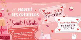 La Ville de Carqueiranne propose son marché des créateurs édition spéciale « Saint-Valentin » le samedi 7 février 2026 de 9h à 17h30 en...