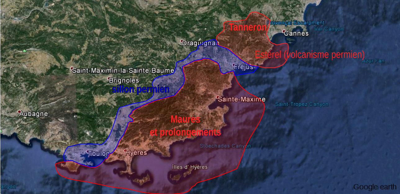 Les formations géologiques les plus anciennes de Provence affleurent dans le massif des Maures. Il forme le socle hercynien qui ailleurs est enfoui sous une couverture sédimentaire plus ou moins épaisse la fameuse « dépression permienne ».