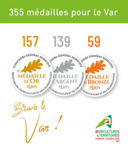 Félicitations aux agricultrices et agriculteurs varois médaillés qui remportent, en 2022, un total de 355 médailles pour la qualité de leurs vins et de leurs produits ainsi qu’un premier prix au Concours des animaux.
