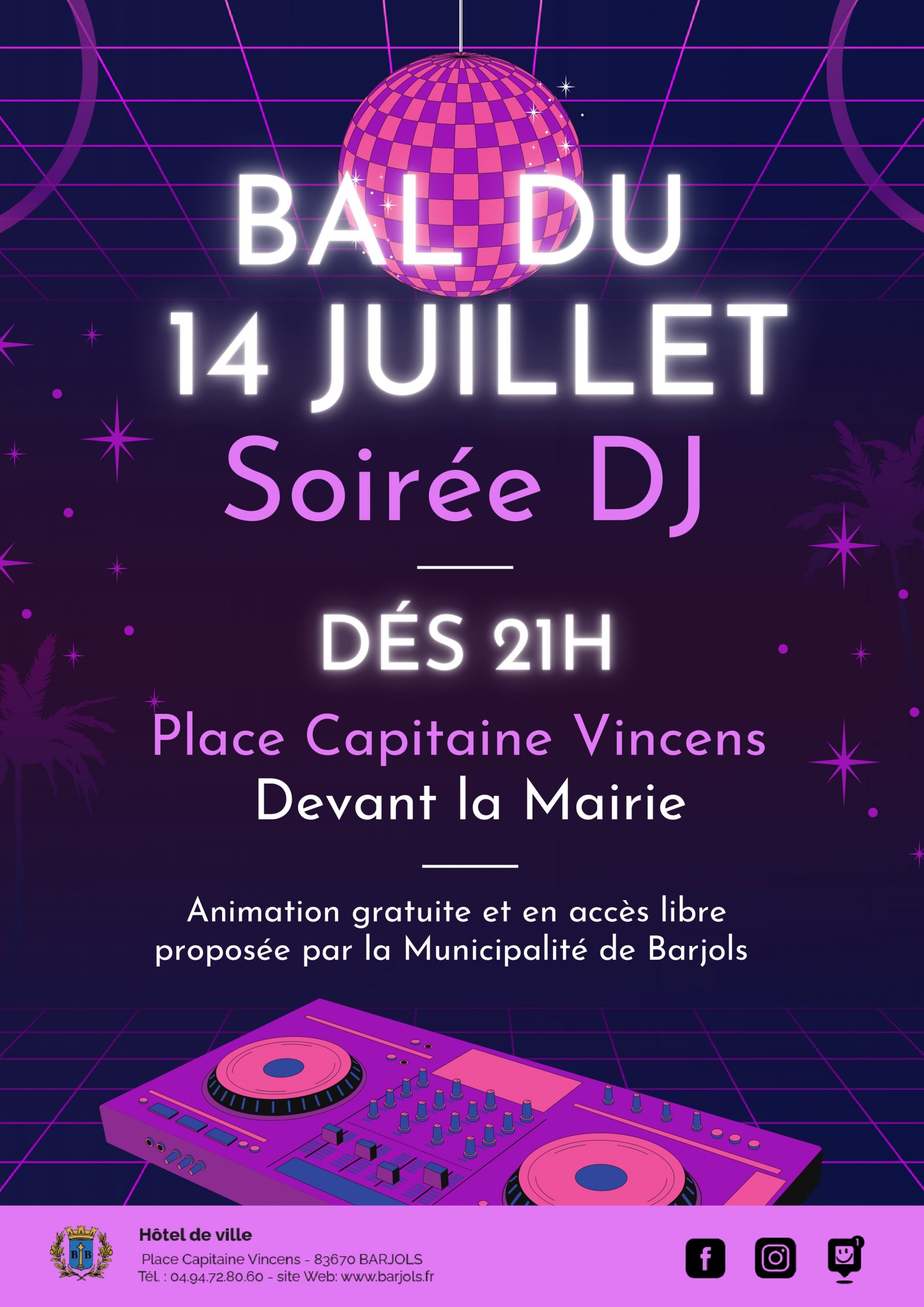 Venez célébrer avec nous la fête nationale le 14 juillet 2023 à partir de 21h sur la place Capitaine Vincens, devant la Mairie de Barjols, avec le show du DJ Animation Paca83