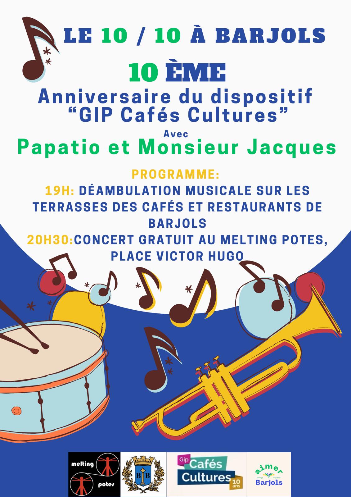À l’occasion des 10 ans du GIP Cafés Cultures, Barjols accueillera une soirée placée sous le signe de la fête et de la musique.