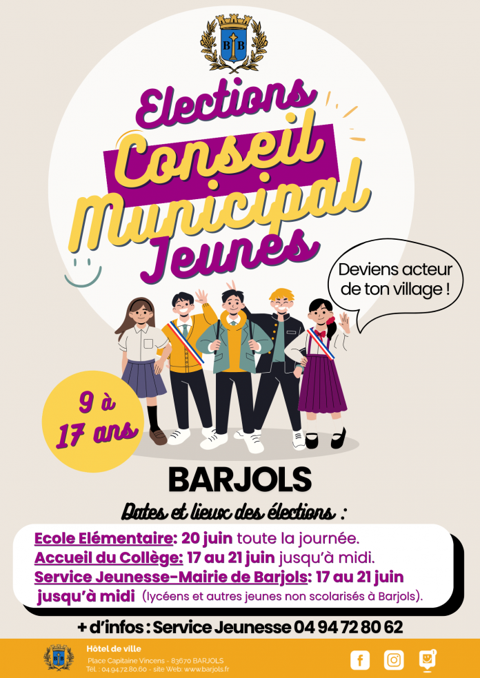 Du 17 au 21 juin 2024, les jeunes Barjolais de 8 à 17 ans sont invités à voter pour les élections du Conseil Municipal des Jeunes.