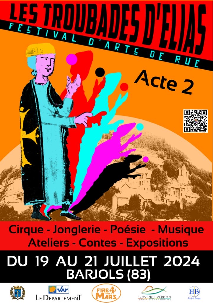 L’association Barjols Bouge vous invite à l’acte 2 du festival « Les Troubades d’Elias » du 19 au 21 juillet 2024 à Barjols.