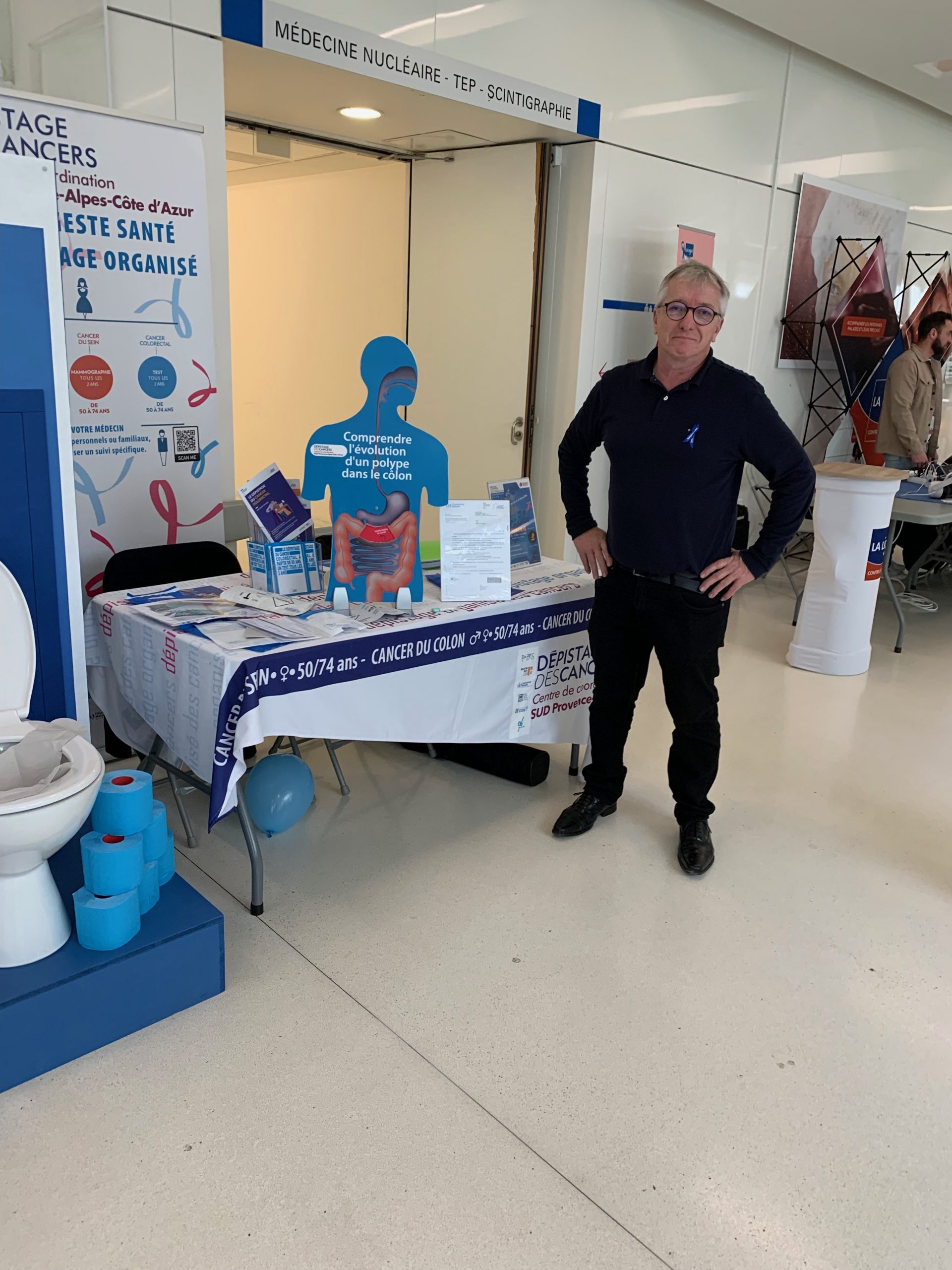 Il y avait, hier matin, au CHITS de Sainte-Musse, une animation particulière dans le hall principal, avec de nombreux stands d’information, dans le cadre de « Mars Bleu », consacré au cancer colorectal.  Un cancer qui touche autant les hommes que les femmes, et qui est aujourd’hui la première cause d’hospitalisation pour cancer en France.