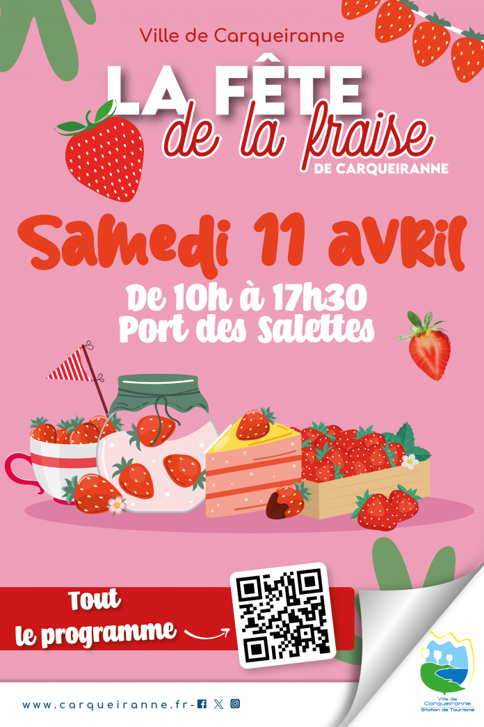 La Fête de la Fraise est de retour à Carqueiranne le samedi 11 avril 2026, de 10h à 17h30, sur le Port des Salettes !