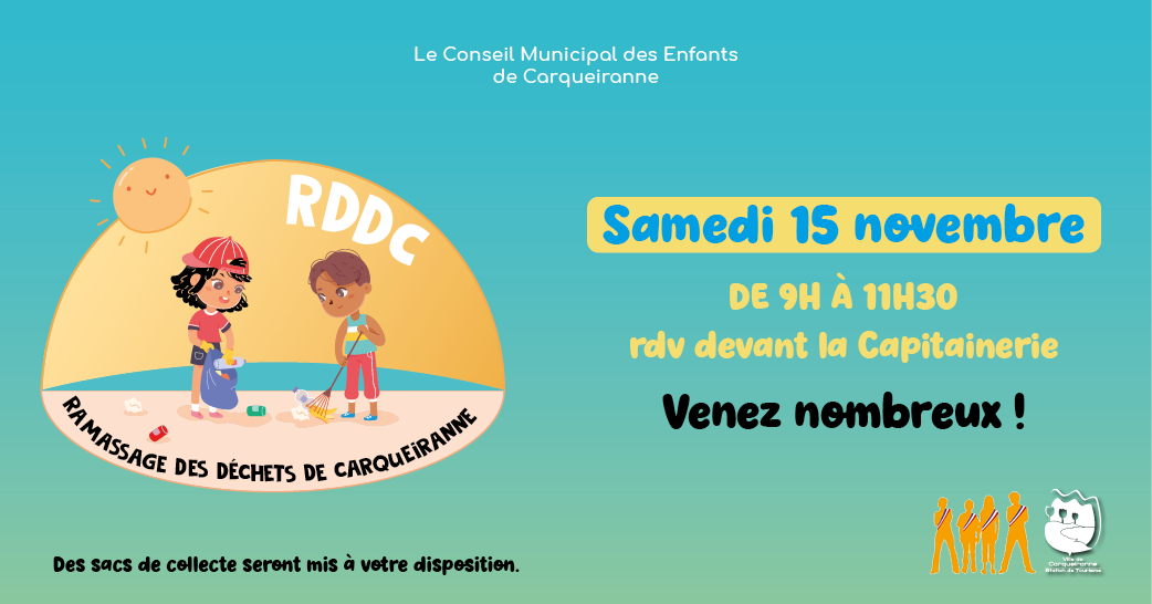 Le samedi 15 novembre de 9h à 11h30, le Conseil Municipal des Enfants organise une opération de ramassage des déchets allant de la plage Peno jusqu’au parc des Pins Penchés.