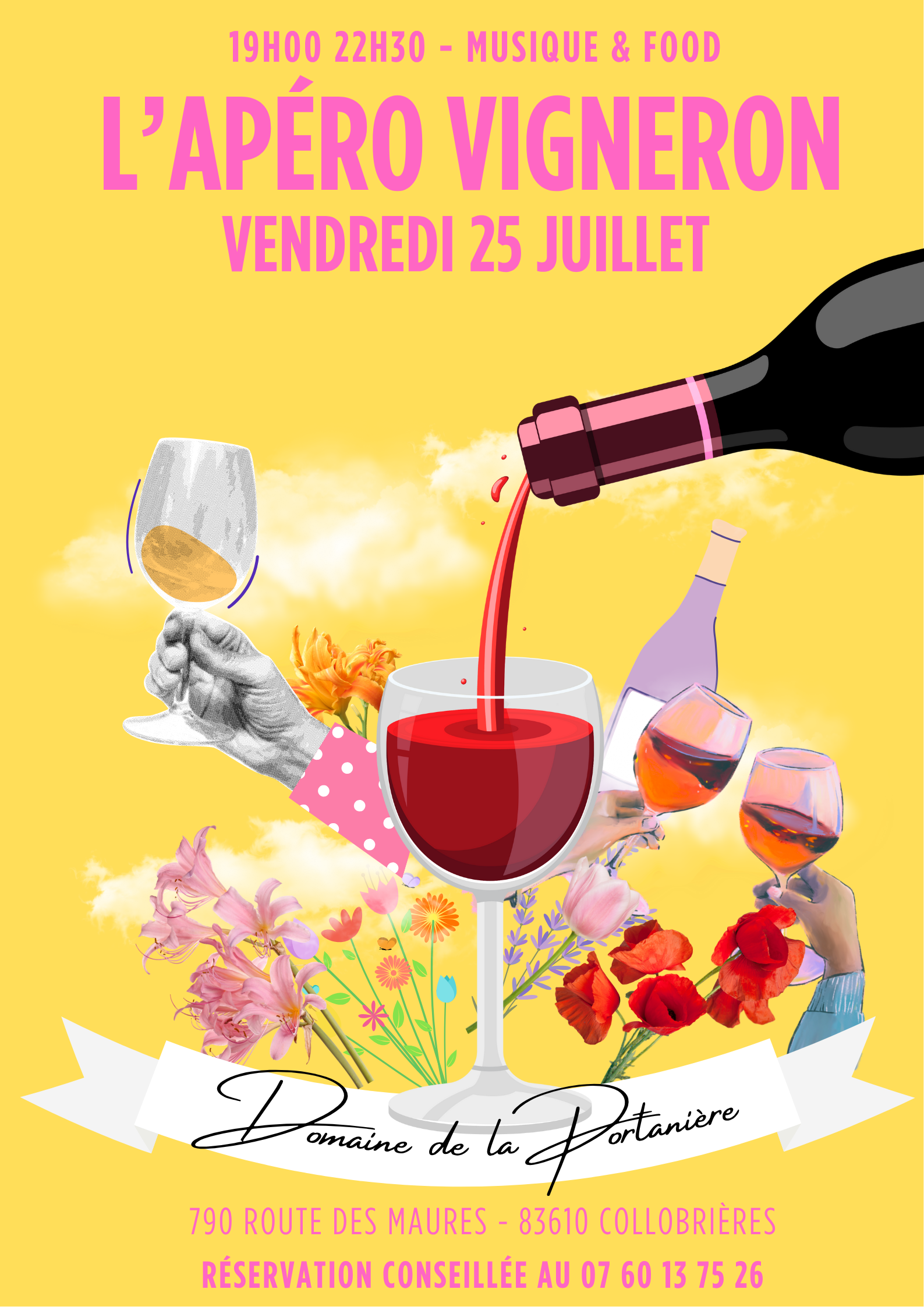 C’est parti pour la deuxième édition de notre apéro vigneron! Rendez -vous le vendredi 25 juillet, à partir de 19h, pour une soirée authentiquement Côtes de Provence, au cœur du domaine, en toute simplicité. L’ambiance musicale sera à nouveau assurée par le duo New Day Séquence close up avec Thibault pour vous surprendre Nous recevrons le food truck Qu’es acò : cuisine maison, de saison et savoureuse. Attention, places limitées ! Ou en cliquant sur le bouton ci-dessous. |