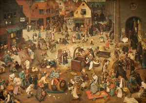 Mirage ou fantasme, le carnaval s’impose comme un rituel, nécessaire et salutaire : on sort dans les rues, masqués et déguisés, on se retrouve en musique pour chanter et danser, défiler ensemble lors de parades. Inversion et distorsion, transe, défoulement, satire, perte d’identité, le carnaval inspire le chorégraphe et danseur autrichien (installé à Marseille) notamment par la représentation qu’en fait Brueghel dans son tableau Le Combat de Carnaval et Carême. Mais le chorégraphe s’il peut emprunter certains motifs aux danses traditionnelles et folkloriques compose un moment de carnaval résolument contemporain. Couleurs vives et déraison, un certain psychédélisme, le vocabulaire chorégraphique dit la liesse et l’énergie fondamentale qui animent le carnaval à la veille du renouveau printanier. Des masques de carton de personnages de pouvoir deviennent cocasses sur les corps dansants. Organisation millimétrée du chaos et pulsations vitales entraînantes forment des tableaux vivants traversés par un rire profond. La chorégraphie gagne tout l’espace en échos et miroirs, célébrant un rituel joyeux pour de nouvelles régénérations de l’homme et de la nature.