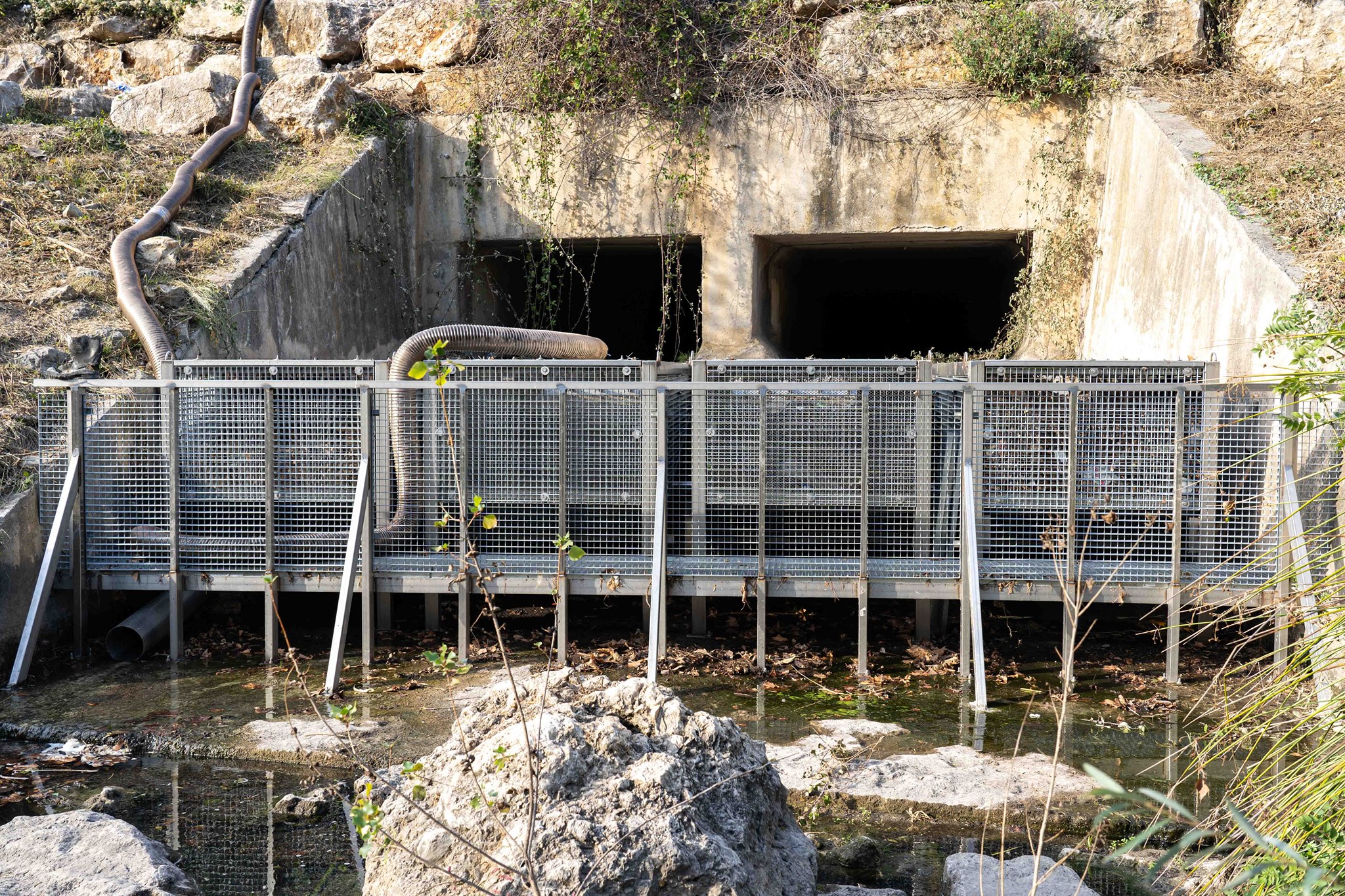 Installation de réceptacles représentés par des cages installées en sortie de réseau pluvial, avant rejet dans la Nartuby.