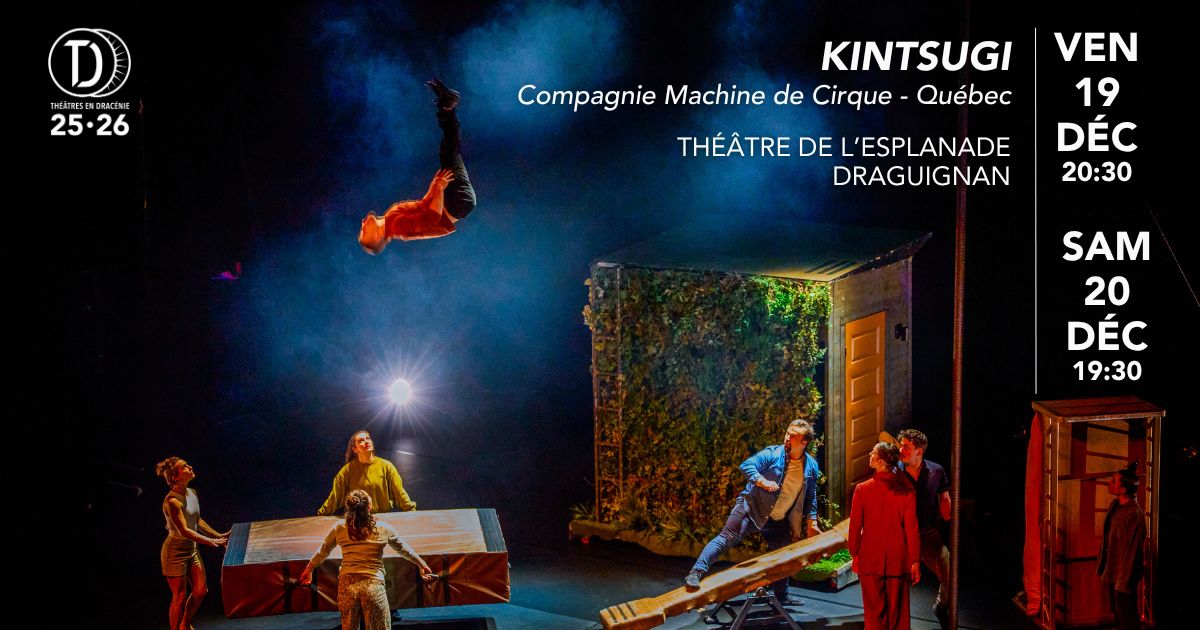 Dans Kintsugi la dramaturgie inspire le geste acrobatique et non l’inverse, toutes les disciplines s’enchâssent, les artistes sortent du cadre et repoussent leurs prouesses techniques jusqu’à l’extrême. Heureux, généreux, débordant de dynamisme, ils multiplient figures et techniques : l’acro danse, le mât pendulaire, les portés, les sauts, les envolées au trapèze et autres suspensions aériennes ! Machine de Cirque va bien au-delà du monde circassien et des prouesses physiques. Kintsugi ouvre une porte vers un autre univers empreint de théâtralité. La troupe élargit son terrain de jeu. Avec talent.