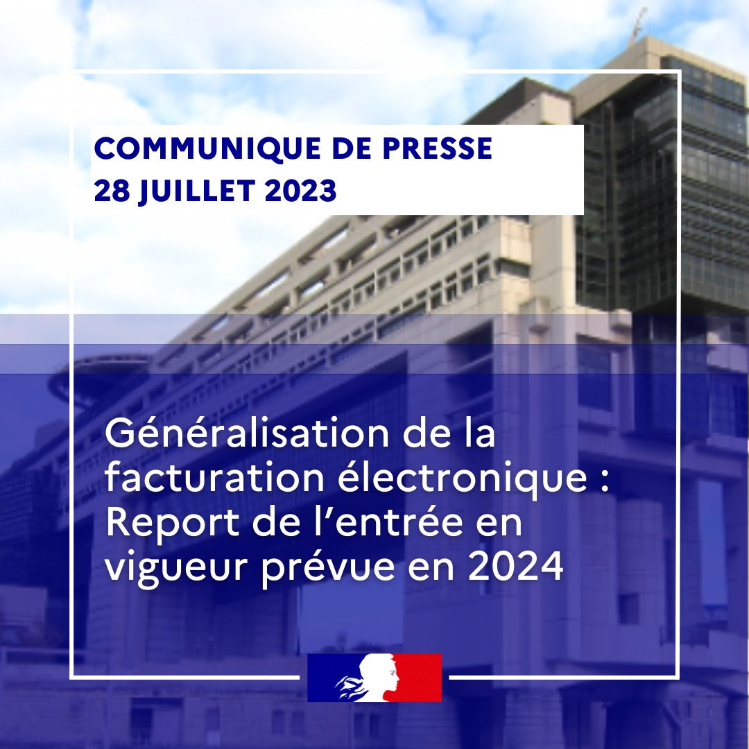 Dans le cadre de ces échanges, il a été décidé de reporter l’entrée en vigueur du dispositif prévue le 1er juillet 2024 afin donner le temps nécessaire à la réussite de cette réforme structurante pour l’économie. La date du report sera définie dans le cadre des travaux d’adoption de la loi de finances pour 2024 dans l’objectif de garantir aux 4 millions d’entreprises concernées un passage à la facturation électronique dans les meilleures conditions possibles.