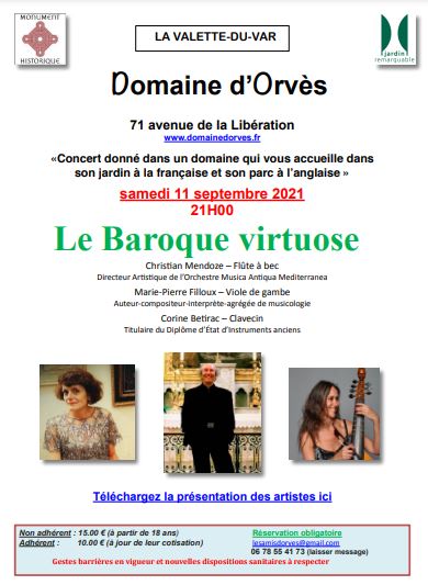 C’est dans le beau domaine d’Orvés de Madame Françoise Darlington-Deval que Christian Mendoze donnera son concert de rentrée intitulé Le Baroque virtuose le samedi 11 septembre à 21h