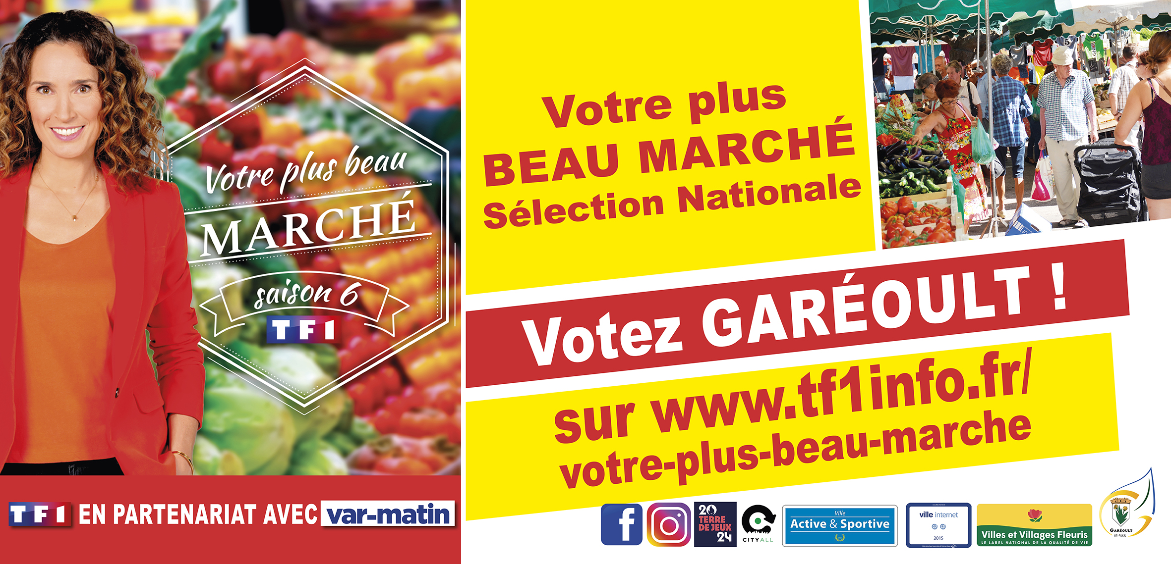 Pour voter, rendez-vous sur le site “Tf1 info” jusqu’au vendredi 26 mai via ce lien 👉 JE VOTE POUR LE MARCHÉ DE GARÉOULT