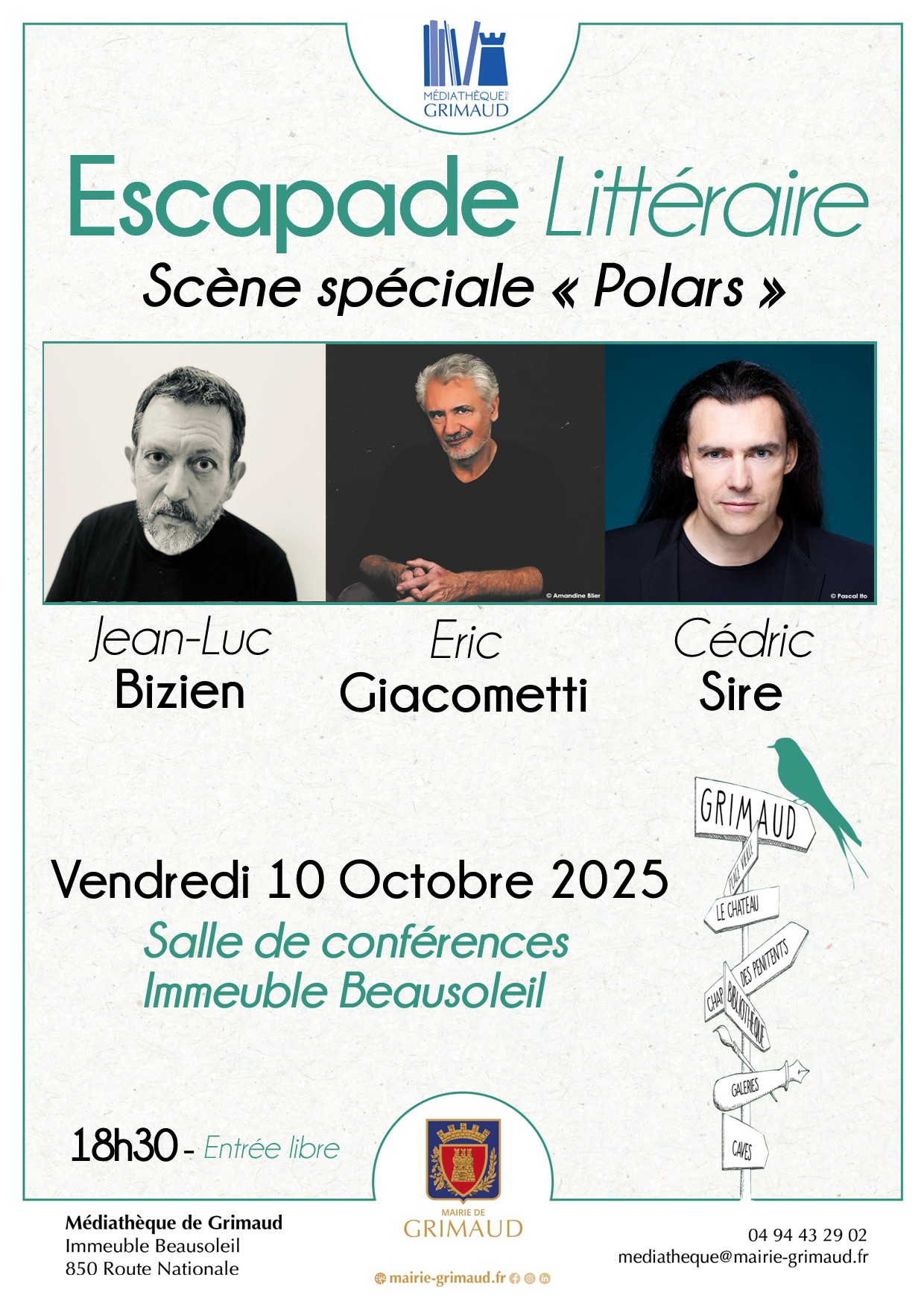 Pour cette 5e et dernière Escapade Littéraire 2025, nous avons le plaisir de vous proposer une scène spécial « Polars » réunissant trois grands auteurs de la ligue de l’imaginaire, collectif d’auteurs francophones créé en 2008 dont l’objectif est de promouvoir et défendre les littératures de l’imaginaire. Jean-Luc Bizien, Eric Giacommetti et Cédric Sire seront présents pour répondre à vos questions et vous présenter leur dernier ouvrage.