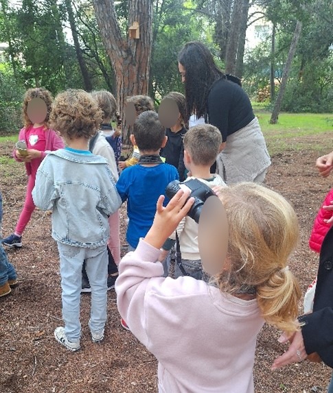 La deuxième partie de l’intervention consistait à essayer de voir et d’écouter des oiseaux dans le parc du Cannet (Refuge LPO), situé à côté de l’école. Une par une, les trois classes de CP ont donc pu faire une visite d’une heure du parc. Munis de paires de jumelles, les enfants ont pu observer quelques oiseaux. L’une des classes était tellement silencieuse qu’elle a même eu la chance de voir deux écureuils se déplaçant dans des arbres ! Au cours de cette balade, les enfants ont participé à plusieurs petits jeux consistant à observer des photos d’oiseaux avec les jumelles et à en reconnaître d’autres grâce à plusieurs indices ainsi qu’à leurs chants. Les enfants se sont tous montrés très doués.