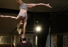 Dans À ciel ouvert, l’aube se lève sur un terrain de jeu archaïque et foutraque, à mi-chemin entre campement nomade et cour de ferme. Assis tout autour de cette scène, nous observons une vie de groupe qui s’organise. Une vie rustique où chacun se jauge dans ses allées et venues, et s’amuse de situations cocasses. Dans cette ambiance de village, nos deux artistes nous livrent un merveilleux cirque alliant burlesque et poésie. Au son d’une musique live, ils enchaînent les numéros : main à main, petite bascule, pole dance et autres acrobaties. Des figures spectaculaires présentées avec beaucoup de talent et une énergie débordante.