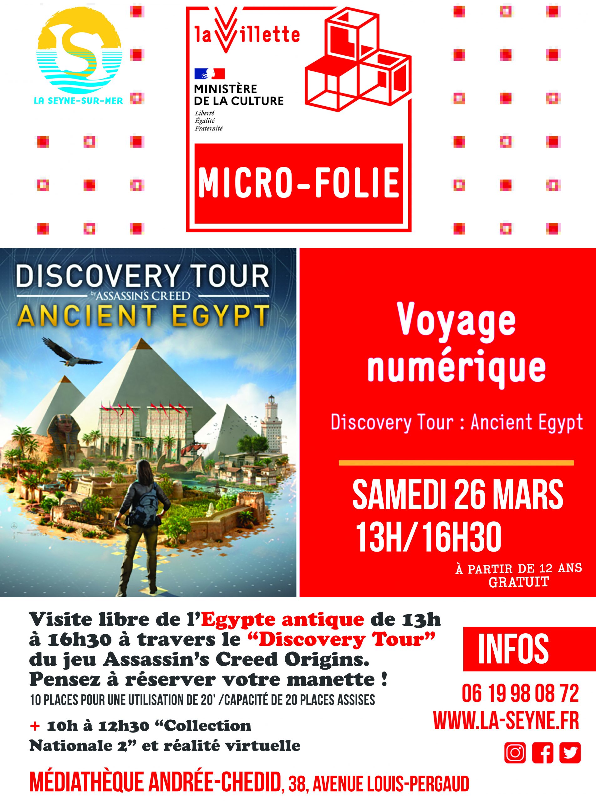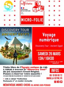 Samedi 26 mars, de 13h à 16h30, le musée numérique Micro-Folie propose une immersion dans l’Égypte antique à la médiathèque Andrée-Chedid, 38 avenue Louis-Pergaud.