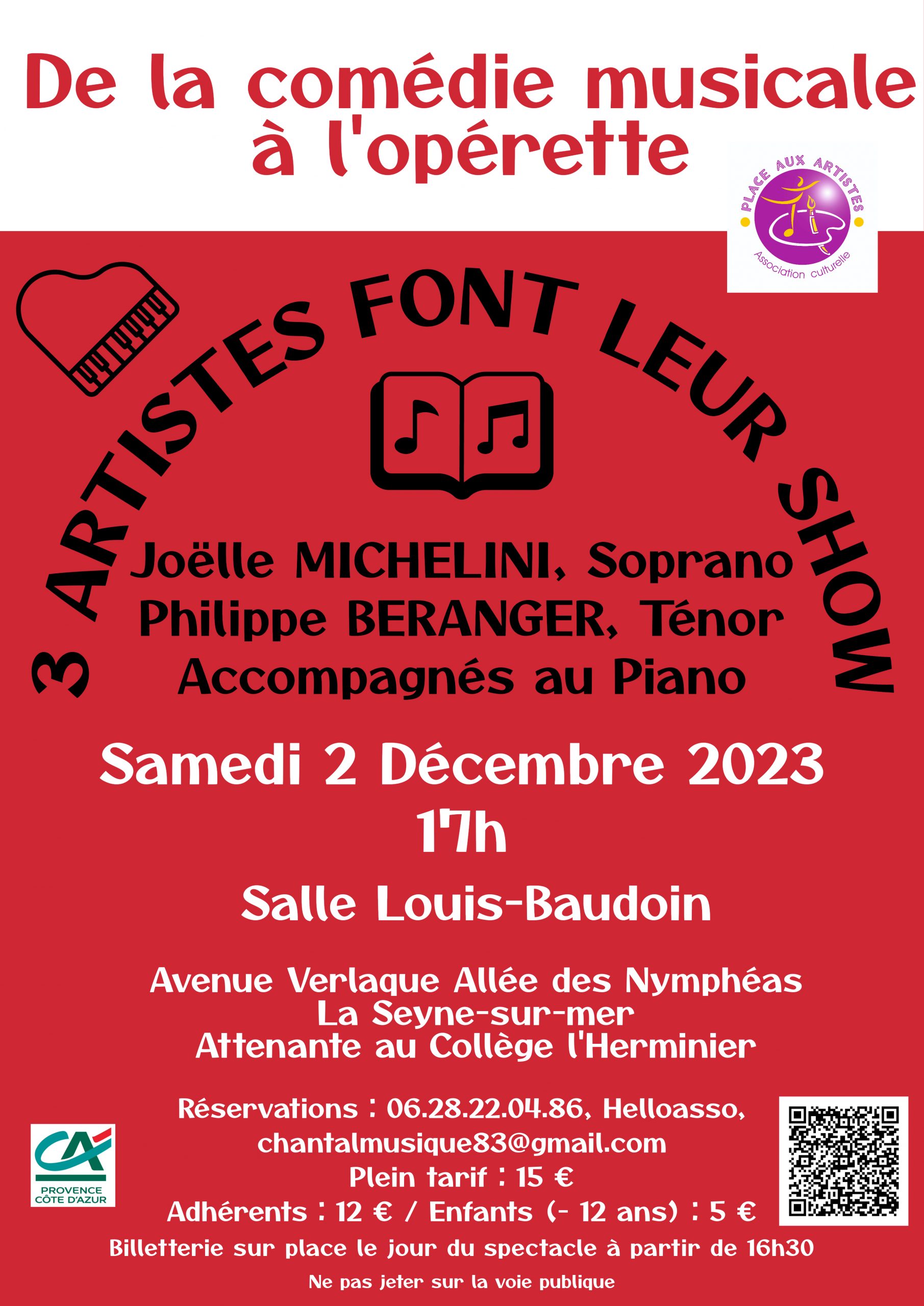 Un Show Inoubliable: 3 Artistes, 1 Date à Marquer !.. Le samedi 02 décembre 2023 – Le 02 décembre 2023 à 17 heures, préparez-vous à être transportés dans un univers musical unique à la Salle Louis Baudoin, Avenue Verlaque à La Seyne-sur-Mer. Trois artistes talentueux se réunissent pour offrir un spectacle inoubliable, passant de la comédie musicale à l’opérette, promettant une soirée de pur divertissement.
