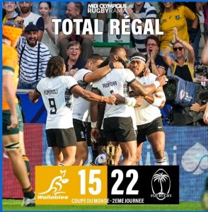 Il s’en est fallu de peu pour que les Fidji remportent leur première victoire la semaine dernière face au pays de Galles, ils se présentaient donc ce dimanche face à une équipe d’Australie la bave aux lèvres. Et ce que l’on pouvait espérer pour les Fidjiens arriva. En battant l’Australie 22 à 15 les joueurs de l’Océan Pacifique ont pris une option pour la qualification dans la mesure où ils devront jouer la Géorgie et le Portugal dans les prochaines semaines. La jeune équipe d’Australie aura toutes les difficultés du monde pour se qualifier malgré son point de bonus défensif. C’est la deuxième place qui est en jeu. On peut imaginer qu’avec la confiance engrangée aujourd’hui les Fidjiens sont sur le bon chemin.