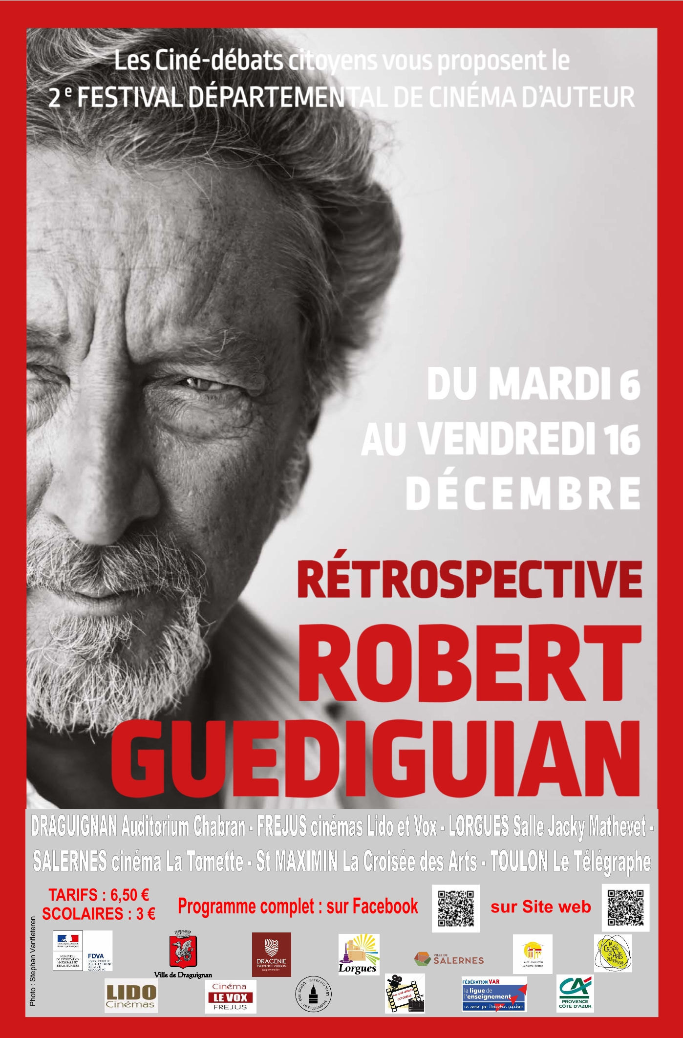 Du mardi 6 au vendredi 16 décembre « Les Ciné-débats citoyens » vous proposent le 2ème Festival Départemental de Cinéma d’Auteur consacré à l’ensemble des œuvres cinématographiques du réalisateur, producteur et scénariste Robert GHEDIGUIAN.