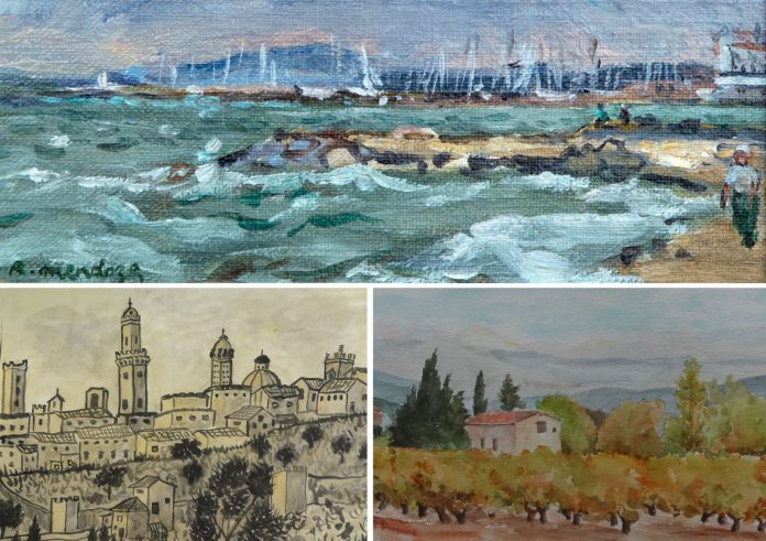 Enri Mendoze, frère de Robert a fréquenté lui aussi l’École des Beaux- Arts. Mais c’est finalement vers la guitare classique qu’il va s’orienter durant plus de 60 ans. Depuis quelques temps il a repris les pinceaux. Et il nous gratifie de peintures à tempera, faisant preuve d’une belle dextérité et d’un goût affirmé.