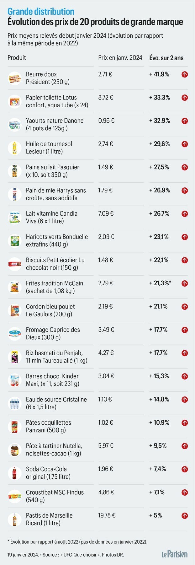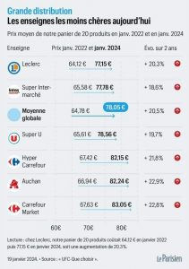 Même constat sur le panier de courses du journal Le Parisien : +20,5%.