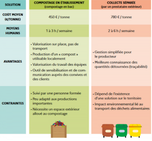 Si la collectivité dans laquelle votre établissement est implantée vous le permet, la collecte se fera en « assimilé » avec les biodéchets collectés auprès des ménages. Néanmoins, la collectivité n’a aucune obligation de collecter vos biodéchets. Ainsi, si elle refuse de vous collecter, il faudra vous orienter vers un prestataire.