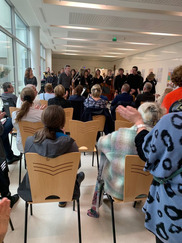 Personnel soignant, patients hospitalisés, visiteurs, ont tous partagé un moment privilégié, oubliant les maux du quotidien, en écoutant « La Petite musique de Nuit » et la Symphonie n° 29 de Wolfgang Amadeus Mozart.
