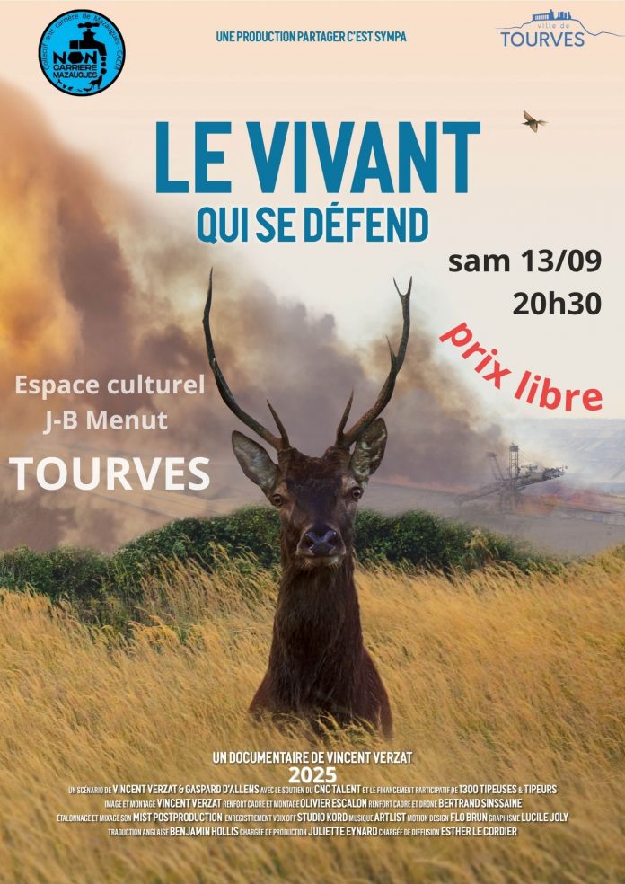 samedi 13 septembre à 20h30 le Collectif anti carrière de Mazaugues organise à Tourves (commune limitrophe au projet de carrière) dans le cinéma de l’Espace culturel Jean-Baptiste Menut, la projection du très intéressant film-documentaire « Le vivant qui se défend » de Vincent Verzat.