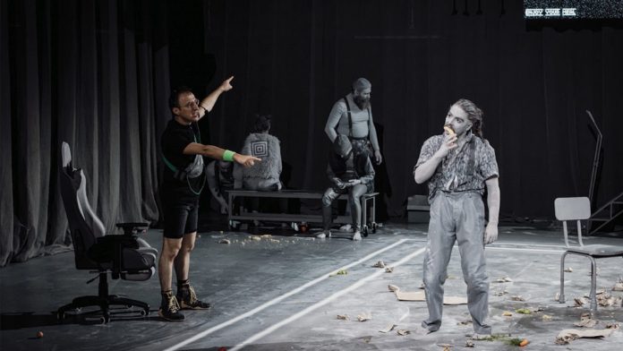 Pour donner vie à cet univers monochrome teinté de gris, Alice Laloy déploie un dispositif scénique d’une puissance visuelle et sonore rare, à la plastique impeccable. Elle compose un tableau en miroir de notre société, révélant ce qu’elle a de plus monstrueux et d’oppressant.