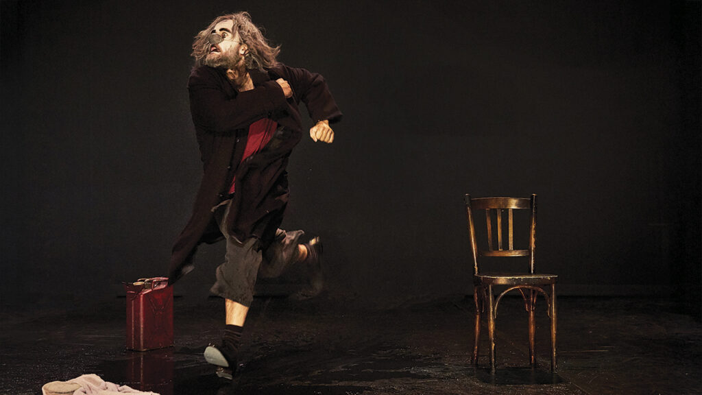 Mangeur compulsif de bananes, un brin fou, un brin clochard, il entraîne le public dans ses questionnements absurdes. Dans la pénombre, nous le découvrons avec le nez gris, les cheveux hirsutes, le visage barbouillé. Tout en enchaînant les numéros et les surprises, il cultive le mauvais goût et les propos trash. Il joue sur les apparitions et les disparitions, il sème le trouble et nous fait rire.