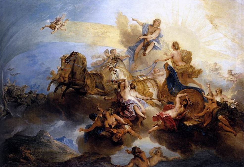 Elle illustre en filigrane la chute de son intendant ministre des finances Nicolas Fouquet, arrêté peu de temps après la démonstration outrancière, devant le monarque, des fastes de son château de Vaux-le-Vicomte, lors d’une fête grandiose le 17 août 1661. L’œuvre est par conséquent doublée d’un message politique fort : quiconque tentera de s’élever aussi haut que le Roi sera jeté à terre et réduit à néant comme Phaéton. Le souvenir de la Fronde était encore dans toutes les mémoires.