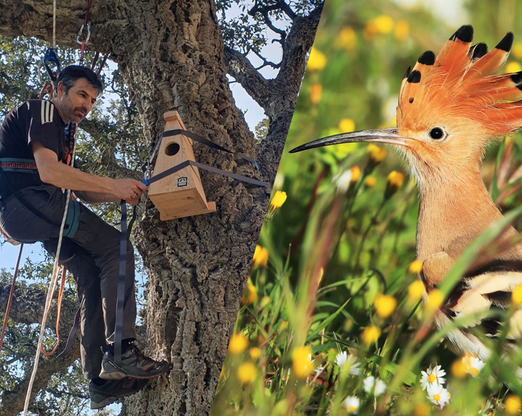 Deux nichoirs à Mésanges, un pour la Huppe fasciée et un à destination du Faucon crécerelle, relativement compliqué à installé, car beaucoup plus lourd que les autres.