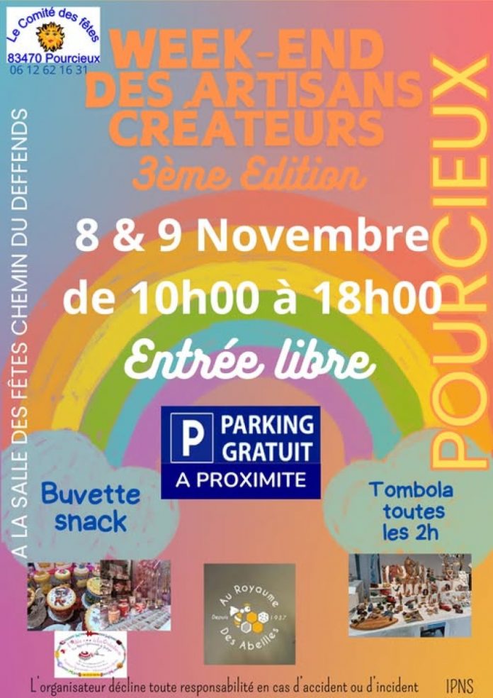 EconomieNos entreprises, nos savoir-faireSainte-Baume Mont-AurélienPourcieuxVar Pourcieux : Week end des artisans et créateurs By TV83.info - Oct 29, 2025 0 Facebook Twitter Google+ Pinterest WhatsApp “ 3 ème édition. Une belle occasion de soutenir l’artisanat et de préparer les fêtes avec des pièces uniques. Buvette et petite restauration sur place. ” Du samedi 8 au dimanche 9 novembre 2025 de 10h à 18h. Salle des fêtes 06 12 62 16 31