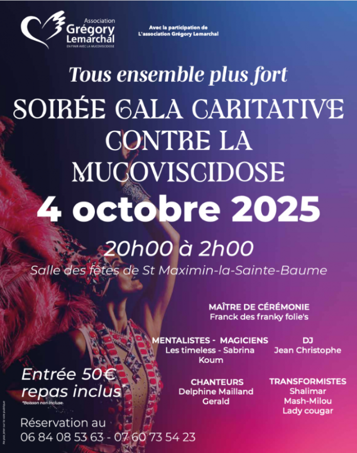 C’est le samedi 4 octobre prochain à 20h qu’aura lieu la Soirée de Gala caritative spéciale, contre la Mucoviscidose.