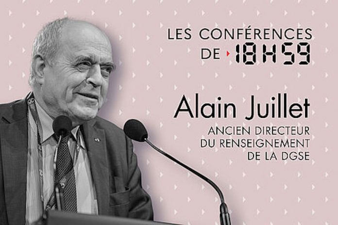 Le jeudi 30 octobre, Alain Juillet, ancien directeur du renseignement à la DGSE et spécialiste reconnu de l’intelligence économique, présentera au public raphaëlois une Conférence de 18h59 sur le thème « L’Europe et la France dans le chaos mondial ».