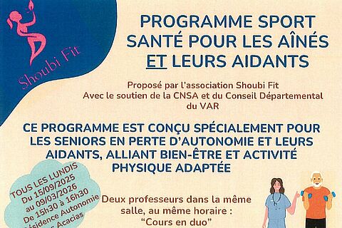 Un programme gratuit de sport santé est proposé aux seniors en perte d’autonomie et à leurs aidants. Conçu par l’association Shoubi Fit avec le soutien de la CNSA et du Conseil Départemental du Var, il combine bien-être et activité physique adaptée dans des cours en duo.