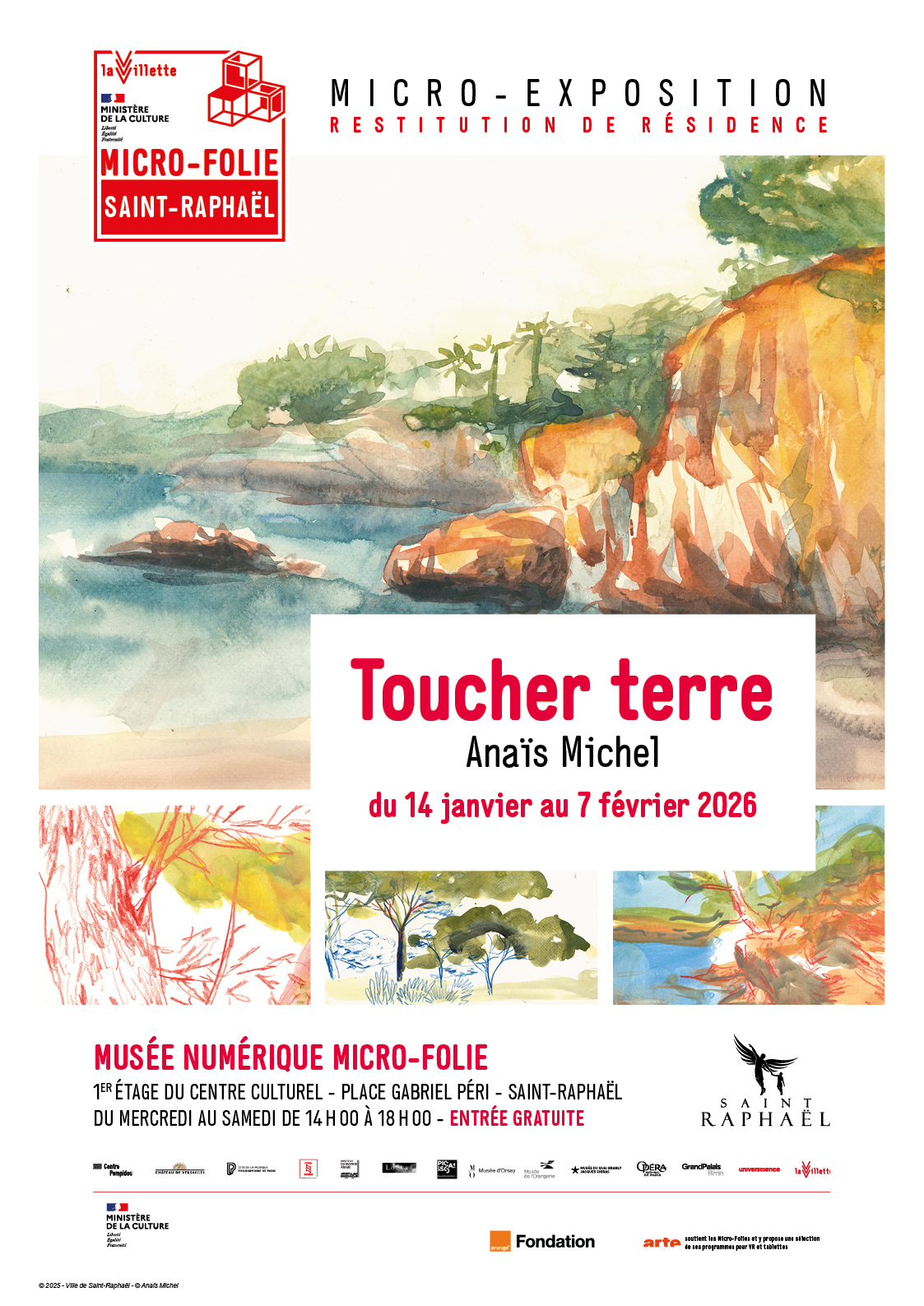 L’artiste a bénéficié d’un temps et d’un espace propices à l’expérimentation, lui permettant d’approfondir sa démarche et de renouveler son regard plastique. En arpentant le paysage de Saint-Raphaël, Anaïs Michel a multiplié les esquisses en tenant compte de son environnement dans sa globalité : chaque trait, forme et nuance inscrit la mémoire du lieu dans la matière, nous invitant à percevoir autrement ce qui nous entoure.