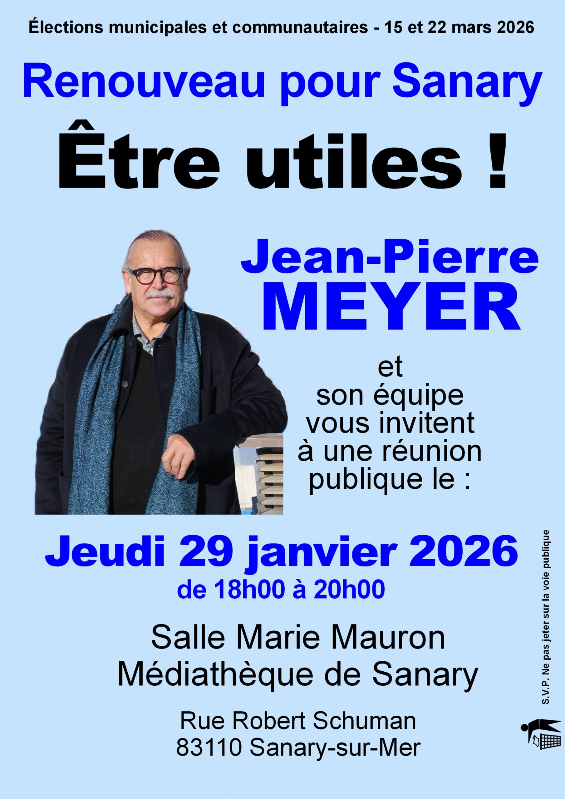 À cet effet, qu’ils soient minoritaires ou majoritaires, leur investissement ne s’arrêtera pas à une campagne électorale, comme l’a démontré Jean-Pierre MEYER, Conseiller municipal sortant, durant les six années écoulées.