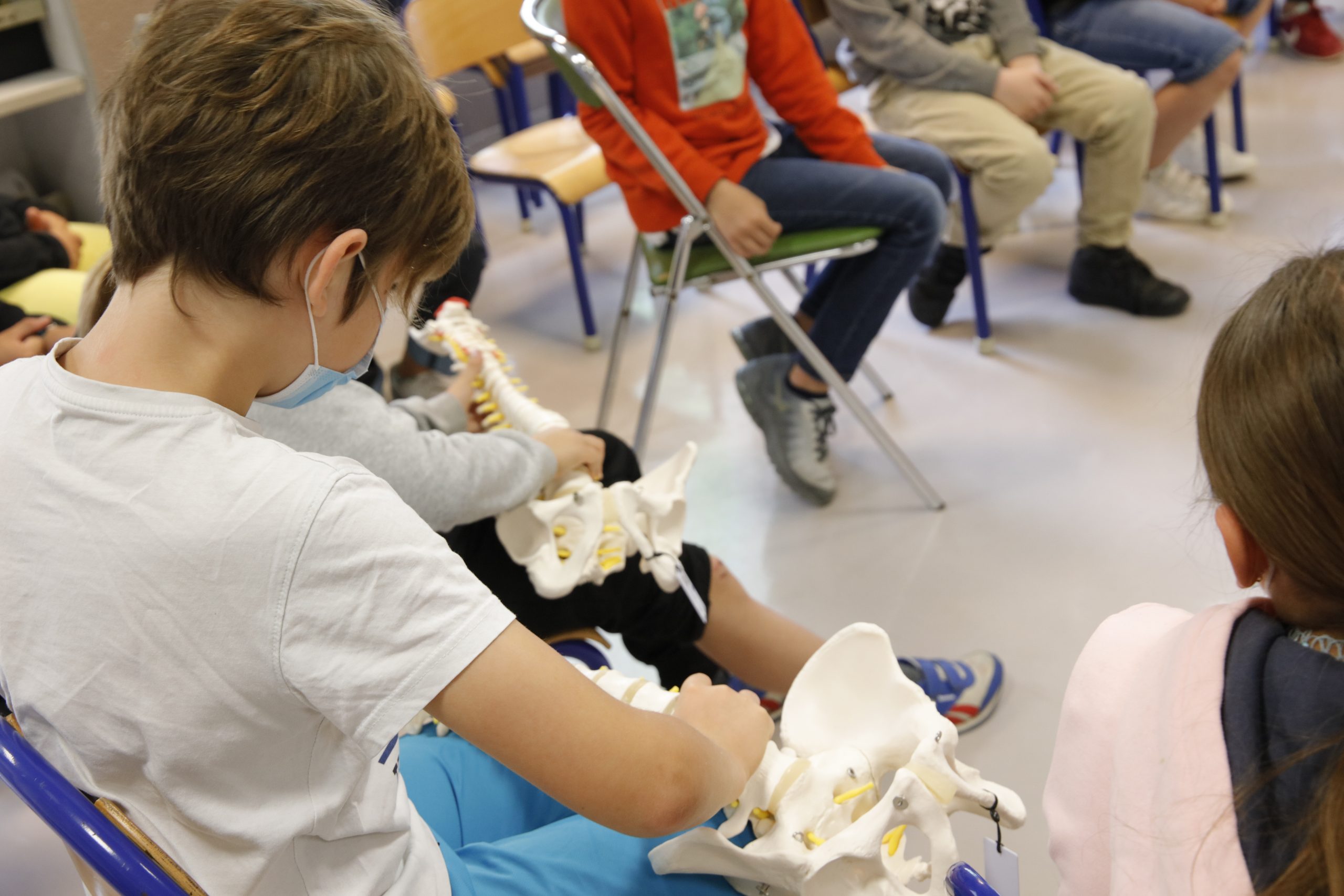 L’ostéopathe Pierre-Loup Petit intervient désormais en deux phases distinctes auprès de nos CM1 de J.M Cousteau et St-Jean :