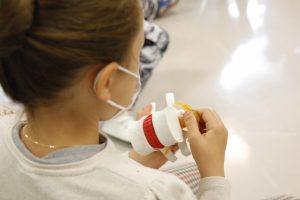 Cette première étape s’effectue dans le cadre scolaire, sur la base du volontariat des enseignants de CM1, avec une sensibilisation en classe sur la thématique des gestes et postures. L’intégralité de l’intervention est réalisée sous forme d’ateliers avec matériel, au travers d’un discours adapté aux connaissances des élèves.
