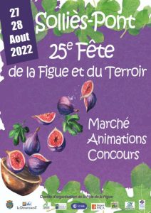 Avant programme : – Vendredi 26 Août 21h: Grand repas sur la place du Général de Gaulle « Menu spécial figue » concocté par des chefs de qualité avec les figues de Solliès-Pont Animation : Orchestre de variétés « Kontrast « live production – Samedi 27 Août Marché tout à la figue 9h-20h : Les producteurs et artisans exposent dans les rues, les places, autour de l’église 8h30-12h30 visite de la Copsolfruit et randonnée dans les figuiers chez un producteur avec les randonneurs craurois Animations dans les rues : grosses peluches, Gaspard et ses ballons, le Dixie au fil du Gapeau, Christian Vidal et Thierry au micro pour animer le village. Jeu des figues cachées et à à trouver dans les rues avec de nombreux lots à gagner Espace enfants : jeux, manège, clown ballons – 9h30 : Accueil des confréries au parking Autran -10h 30 : Départ du Château Défilé dans les rues avec le carrosse de la figue, les chevaux, les grosses têtes, lei Ginesto groupe folklorique, le Dixie au fil du Gapeau et le cortège des confréries -11h : Accueil des personnalités et Inauguration de la fête avec les personnalités sur la place Général de Gaulle. Visite des stands avec les personnalités présentes -12h30 Déjeuner des confréries Après midi 15h Défilé de mode et sous vêtements place Général de Gaulle 16h30 : Jeu questions « le quart d’heure du public » avec Jean-Guillaume ASTESIANO de l’auberge de la Tuilière – Nombreux lots à gagner 18h Election du bébé figue 2022 20h : Soirée dansante du Rotary au château – Dimanche 28 Août 8h30-12h30 Randonnée de Solliès-Ville et de la BD avec « les Randonneurs Craurois » et visite chez un producteur de figues à Solliès-Pont 9h-18h Marché et animations dans les rues et Marché : magicien, Bâton rouge et ses jardiniers, peluches géantes, Gaspard le clown et ses ballons. Espace enfants : mini ferme des « Écuries du romarin » jeux et manège pour les enfants avec Céline. 8h 30 : Accueil des confréries au château 9h30 : départ des confréries en cortège du château vers la place du Général de Gaulle et tour du marché 10h : Ouverture du chapitre et intronisations des nouveaux membres et des confréries amies par la Confrérie de la Figue de Solliès 10h-12h : À la recherche des figues cachées dans Solliès-Pont 11h-12h : Messe de la figue église Saint Jean –Baptiste 12h 15 : bénédiction des confréries et aubade musicale sur le parvis de l’église 12h : Retour en défilé au château Après-midi Défilé et animation des « Carnoulettes » dans les rues de Solliès-Pont 14h 30 -16h30: Démonstrations culinaires avec des chefs de la région Spectacle des Ginesto sur la place de l’église 16h30 : Jeu « le Quart d’heure du public » : Questions sur la cuisine et sur le terroir avec Guillaume Artésano de l’auberge de la Tuilière – Nombreux lots à gagner 17h : Concours de Chant (apportez votre clef USB) 18h : Remise des prix du concours de chant 19h30 : Apéritif de Clôture offert aux exposants Et pendant toute la fête Menus à base de figues dans les restaurants de Solliès-Pont et du canton Rencontre avec les acteurs de cette belle fête du terroir qui est l’emblème de notre ville, professionnels, exploitants, partenaires, bénévoles. Vous pourrez aussi pendant tout ce week-end dédié à la figue découvrir des produits originaux sur son marché, déguster des plats cuisinés et apprécier toutes les qualités gustatives de notre figue AOP. À votre disposition pendant la fête : – Navettes gratuites pour les visiteurs au départ des différents parkings vers le centre ville. – Navettes gratuites entre Solliès-Pont et sa Fête de la figue et Solliès-Ville et son Festival BD.