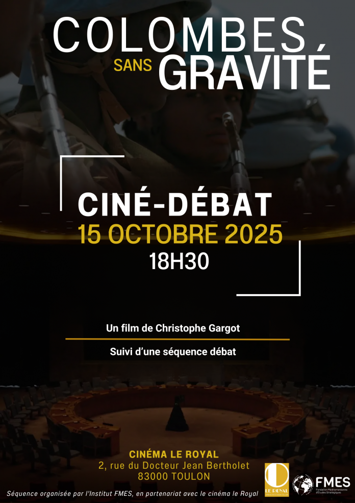 L’Institut FMES a l’honneur de vous inviter le Mercredi 15 octobre de 18h30 à 20h45, à une séquence ciné-débat, autour du film « Colombes sans gravité », de Christophe Gargot. La projection du film sera suivie d’un échange croisant les perspectives opérationnelles et celle du réalisateur.