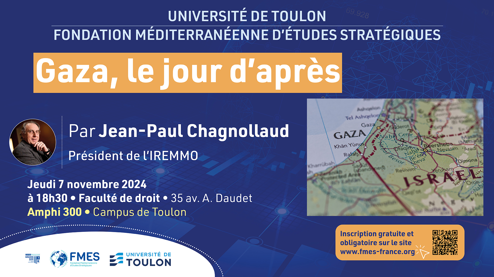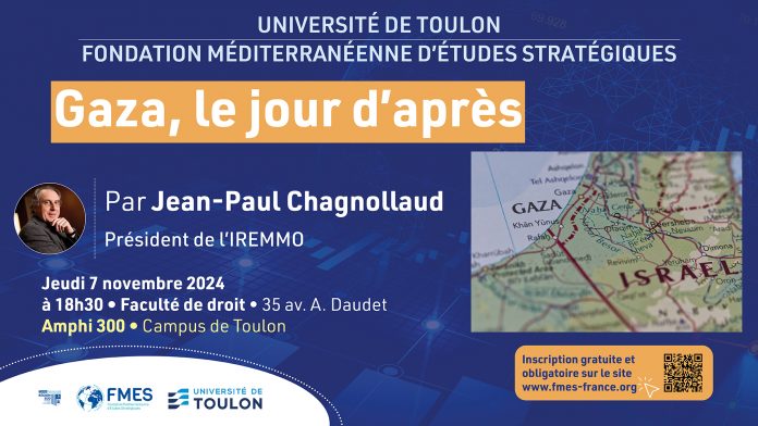 L’institut FMES est heureux de vous convier, en partenariat avec l’Université de Toulon, à sa conférence mensuelle, le jeudi 7 novembre 2024 à 18h30 dans l’amphithéâtre 300 de la faculté de droit, campus de Toulon Porte d’Italie.