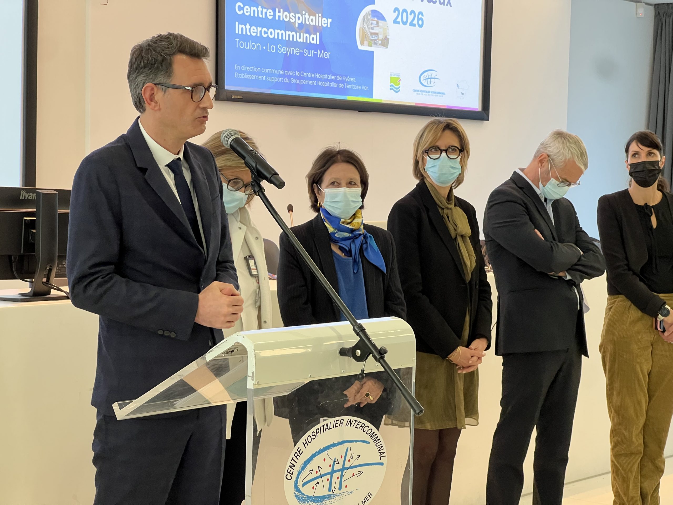 Premier à prendre la parole, M. Yann Le Bras, directeur du CHITS, a d’abord salué les personnalités présentes, parmi lesquelles M. Simon Babre, préfet du Var, Mme Massi, maire de Toulon, et tous les élus et responsables présents. Devant une assemblée, nombreuse et masquée – le retour obligatoire du masque n’est pas un détail- il a d’abord évoqué le dramatique incendie qui a touché l’hôpital de Hyères, provoquant la mort d’un patient. Il a également rappelé que « l’action hospitalière, est un travail d’équipe et de coordination… »