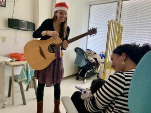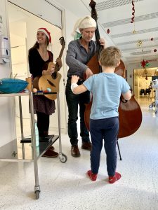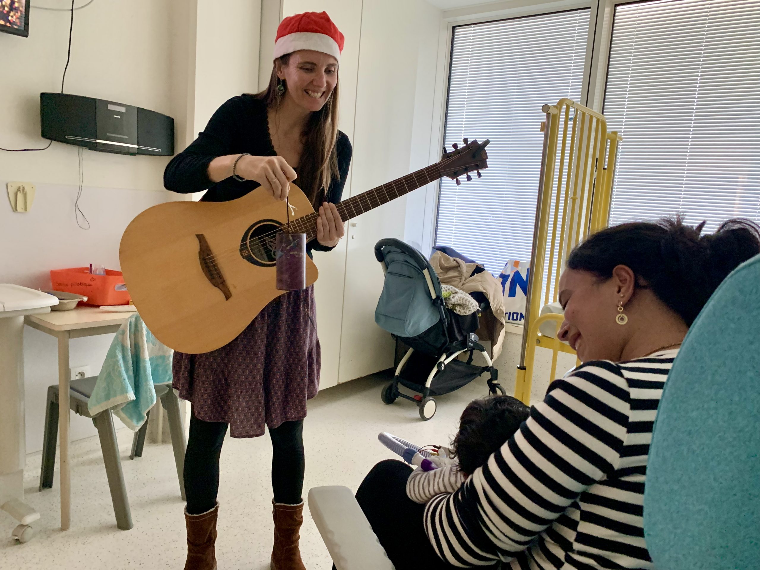 Une fois par semaine, deux musiciens investissent les services de pédiatrie et de néonatalogie de l’hôpital Sainte-Musse pour 3 heures de musique auprès des enfants, accompagnant le quotidien des familles et des soignants tel un allié thérapeutique et une bulle d’air douce et joyeuse.