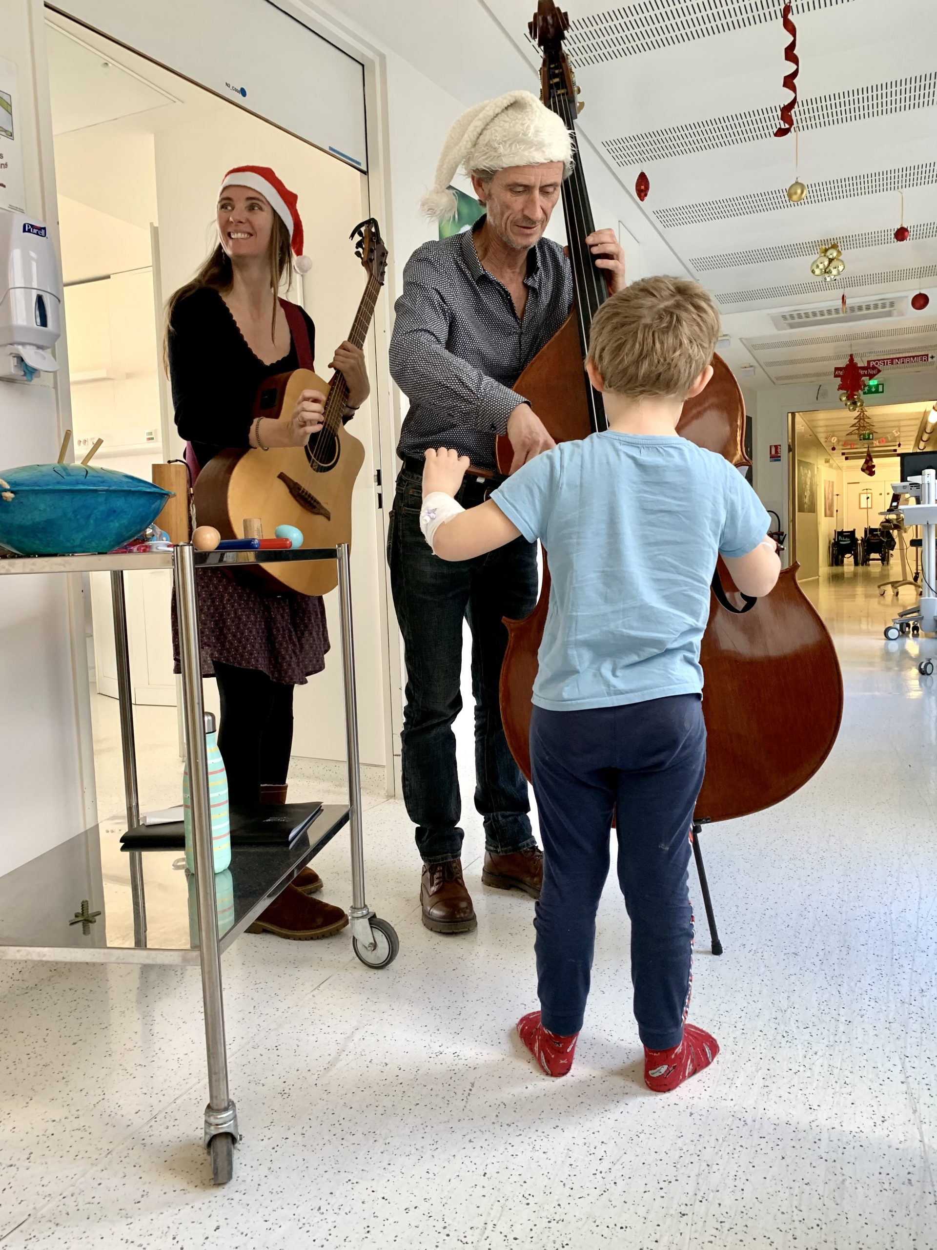 Une remise de chèque organisée au profit de l’association Phonambule s’est déroulée le 17 décembre en pédiatrie, en présence de l’association Kiwanis. Deux musiciens, Yann et Margaux, (contrebasse et guitare) ont proposé des chants de Noël dans la salle de jeux avant d’aller dans les chambres des petits patients.