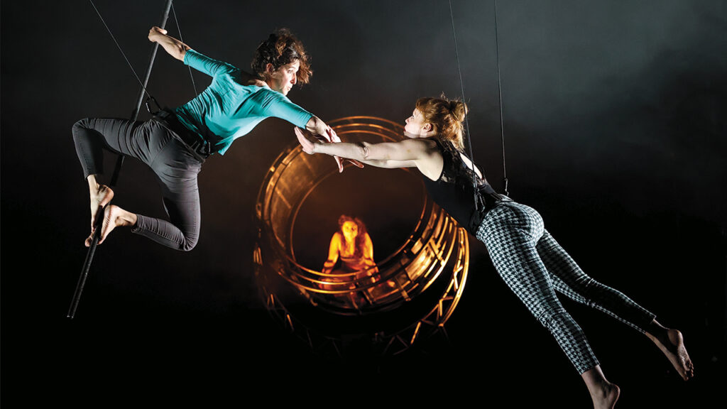 Dans une roue giratoire, une acrobate tourne inlassablement. Suspendue dans les airs, une danseuse aspire à plus de liberté. Sur son fil, une funambule tend à rester en équilibre. Jusqu’à ce que tout chavire…