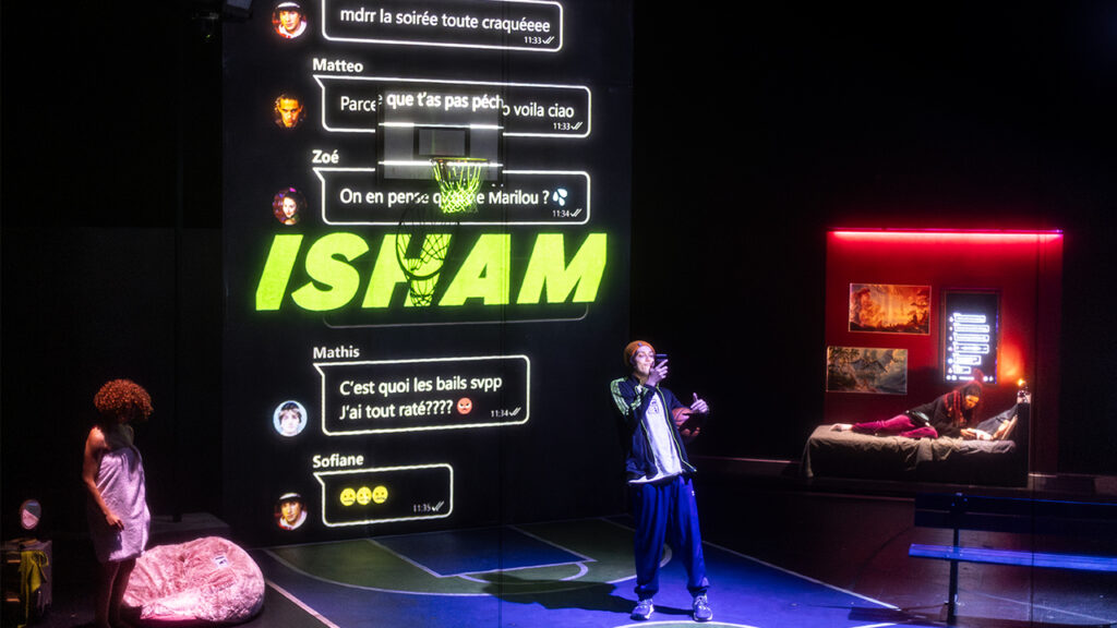 Chaque acteur·rice incarne deux personnages : un même corps, deux façons de l’habiter, deux représentations de soi, deux masques sociaux. Leur présence physique se superpose à des images numériques (selfies, avatars…), brouille les repères et multiplie les points de vue. Tout au long de cette expérience, le réel et le virtuel se confondent. Mais toutes et tous nourrissent des émotions qui, elles, restent d’une vérité saisissante.