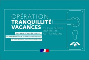 Dans le cadre du plan d’action de lutte contre les cambriolages, la campagne «Opération Tranquillité Vacances » est reconduite pour les vacances d’été.